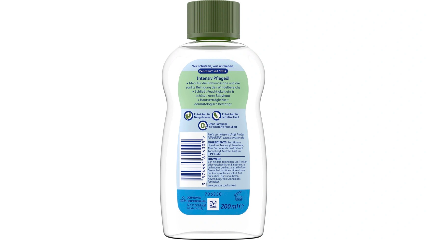 يعتني ويحمى حاجز حماية البشرة: زيت العناية المكثف من PENATEN هو زيت تدليك للأطفال مكثف، يحمي ويرعى بشرة الأطفال الجافة، حيث يعزز ويحمى حاجز حماية الجلد. يساعد زيت الأطفال المكثف للبشرة الجافة على الاحتفاظ بالرطوبة بشكل موثوق، بينما يحمي في نفس الوقت بشرة الأطفال الرقيقة، وقد تم تصميمه خصيصاً للمواليد الجدد. بالإضافة إلى ذلك، يعد زيت الجسم مثالياً كمنتج أساسي للمواليد الجدد. يعتني مستخلص الصبار الطبيعي بالجلد ويهدئ البشرة الحساسة والمفرطة الحساسية. تم التأكد من توافقه مع البشرة من خلال الفحوصات الجلدية.